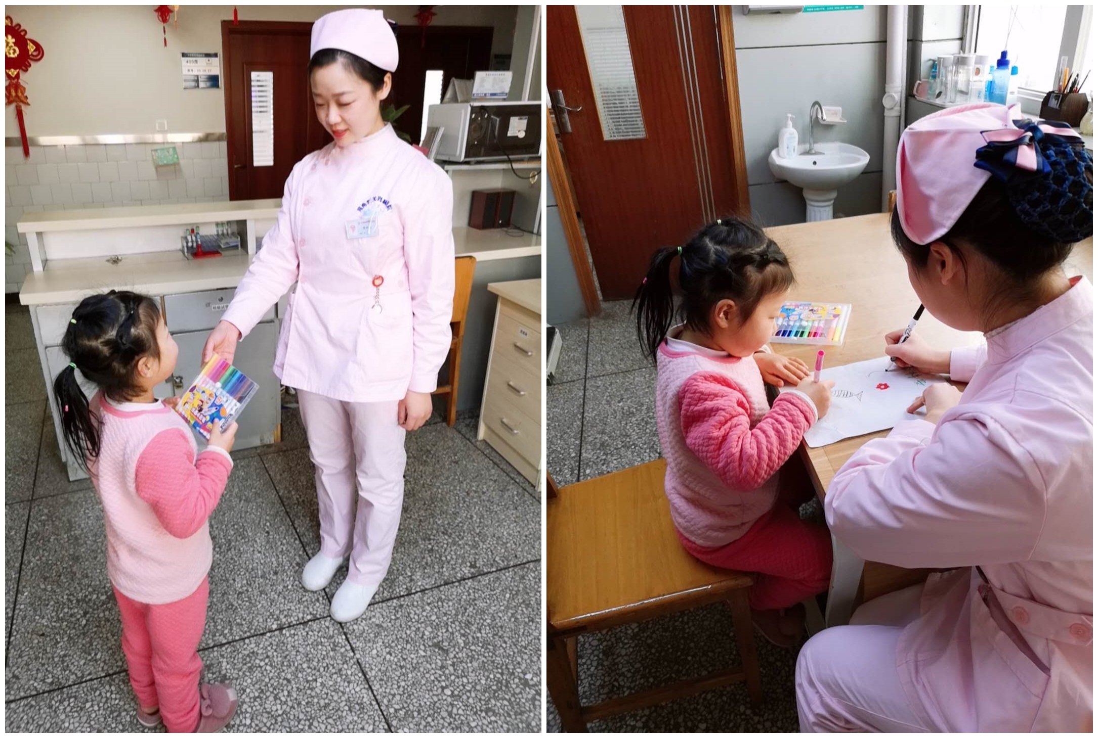 小姑娘特别喜欢画画,护士郭利谦为她买来画笔,看着她认真学画画的样子真可爱送一丝暖意,心中春光和煦。